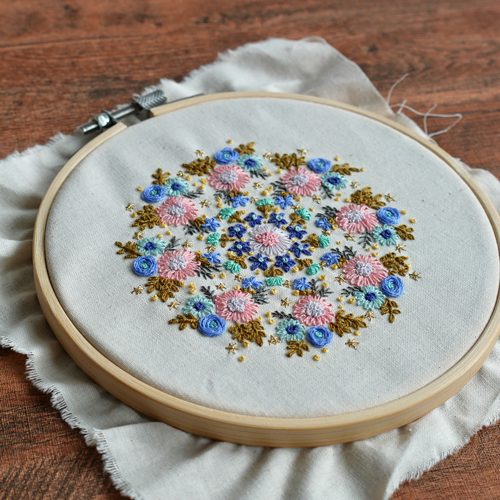 Téléchargez en pdf ce motif de mandala fleuri, que vous reporterez ensuite sur votre tissu à l’aide d’une planche lumineuse/stylo Frixion, ou d’un papier transfert spécial.